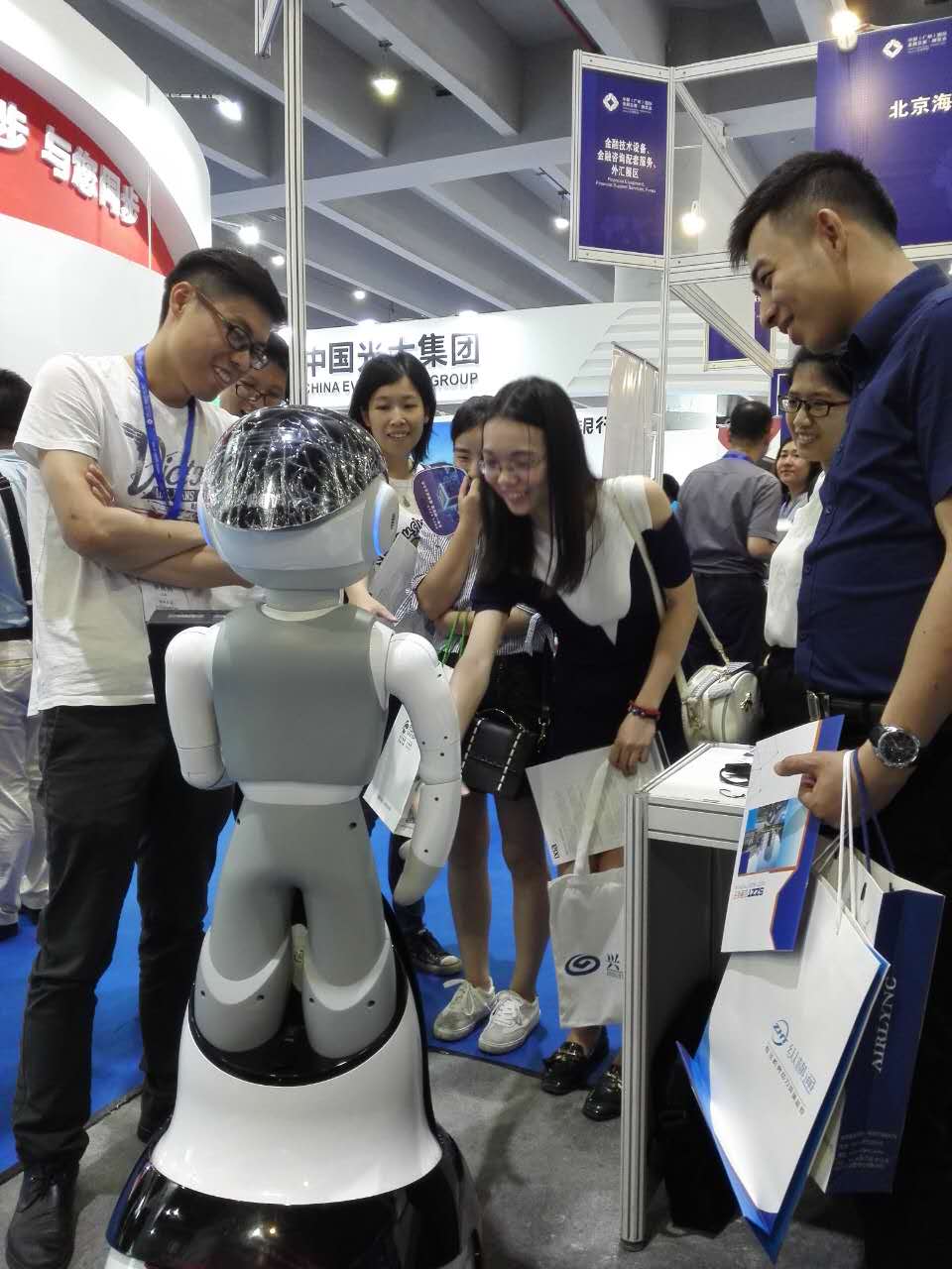 昨日(6月25日),歷時(shí)三天的第六屆中國國際金融交易·博覽會(huì)(以下簡稱“金交會(huì)”)在廣州圓滿閉幕。本屆金交會(huì)以“金融新格局 增長新動(dòng)能”為主題,展覽總面積4萬平方米,參展機(jī)構(gòu)共356家,設(shè)立18個(gè)主題展區(qū),130多位金融專家學(xué)者出席論壇活動(dòng)。此次與證通電子一同征戰(zhàn)金交會(huì)的是一款智能機(jī)器人FINBOT,三天展會(huì)中,F(xiàn)INBOT在現(xiàn)場可謂是吸粉無數(shù)。