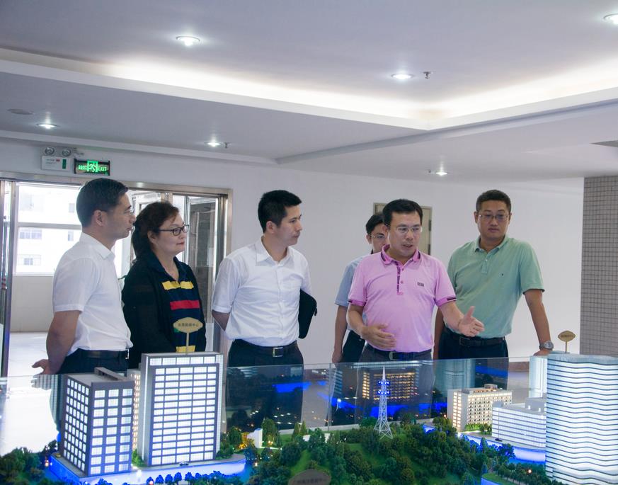 證通電子總裁曾勝強先生(右二)向霍煒先生(右三)一行介紹公司規(guī)劃布局