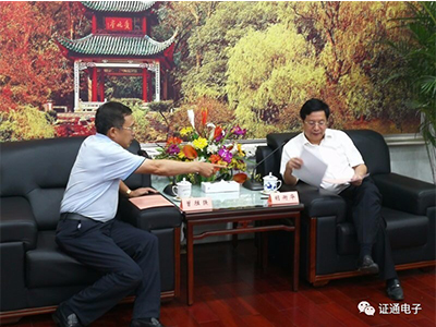 證通電子董事長曾勝強(qiáng)向胡衡華書記匯報工作