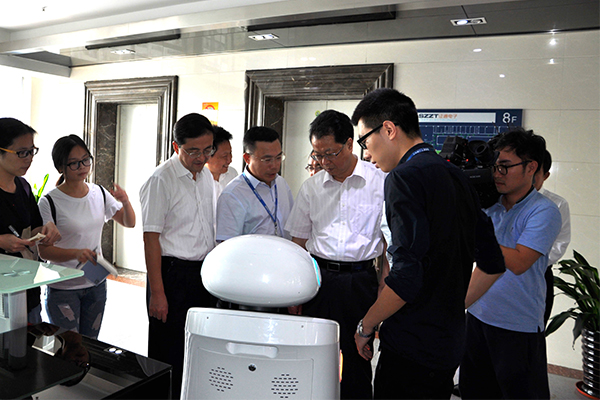 張書記現(xiàn)場(chǎng)體驗(yàn)證通銀行服務(wù)機(jī)器人-小僮