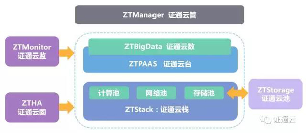 證通云產(chǎn)品按功能組件可劃分為IAAS基礎(chǔ)設(shè)施、PAAS基礎(chǔ)設(shè)施、云存儲(chǔ)組件、高可用異動(dòng)容災(zāi)組件、云監(jiān)控組件、PAAS大數(shù)據(jù)平臺(tái)組件、云管理平臺(tái)七大部分,分別是: