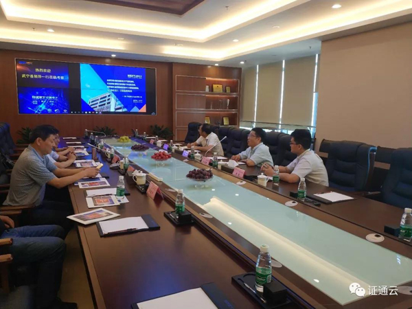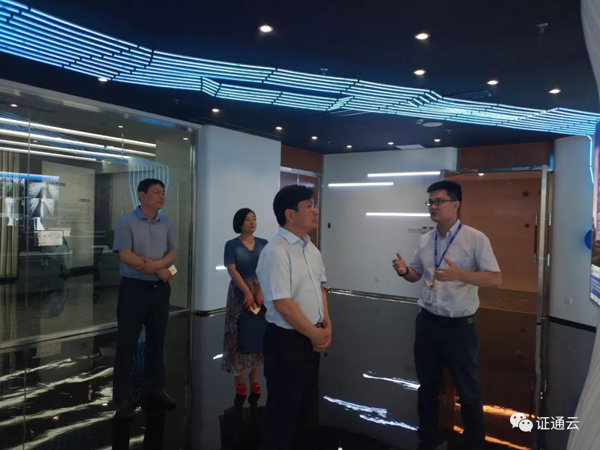李廣松一行先后參觀了云計算展廳和數(shù)據(jù)中心,詳細(xì)了解公司IDC業(yè)務(wù)板塊的運營情況,隨后與證通電子參會人員在14樓會議室舉行座談,并就智慧城市的運營模式進行了深入交流,同時也積極宣傳武寧獨特的環(huán)境優(yōu)勢。考察中,李廣松對公司在IDC及云計算方面取得的成績給予了高度評價。