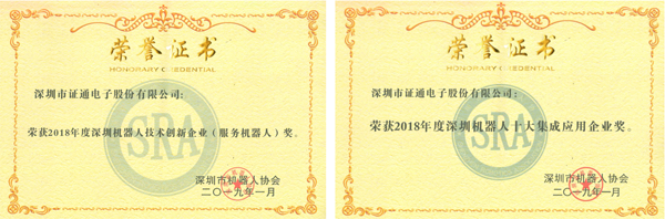 證通榮獲了2018機(jī)器人“技術(shù)創(chuàng)新企業(yè)”和“十大集成應(yīng)用”兩項(xiàng)大獎(jiǎng)