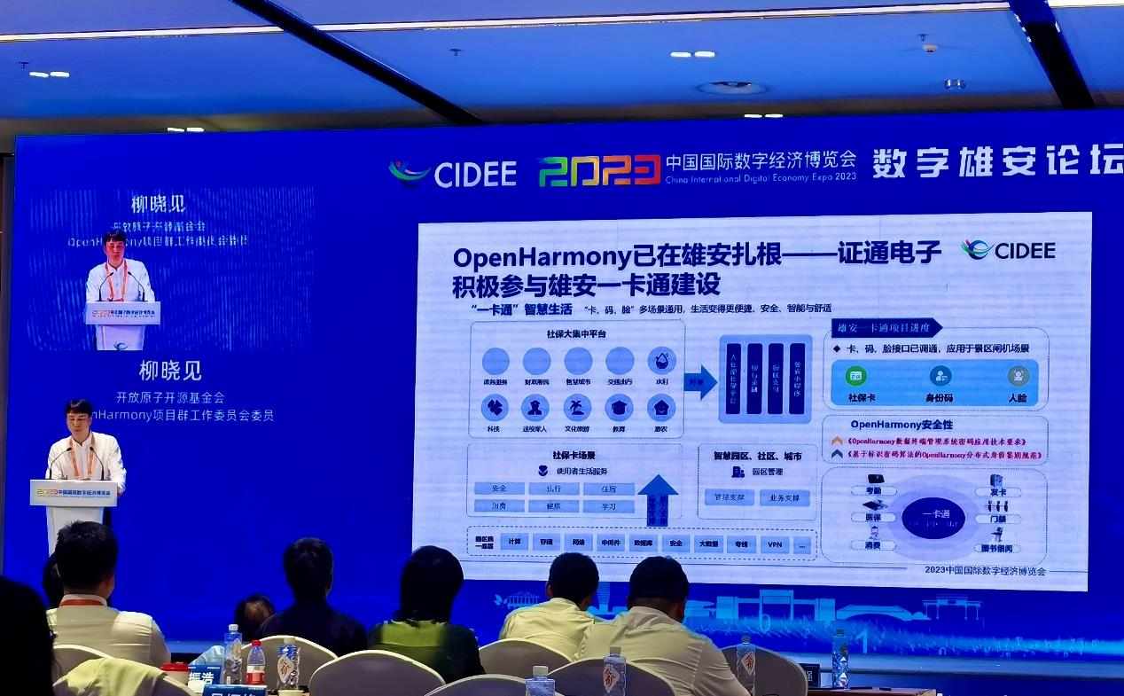 證通電子作為鴻蒙領域的探路者與實踐者,很早就與雄安新區(qū)結下了不解之緣,今年2月6日至2月9日,證通電子受邀至新區(qū)進行鴻蒙企業(yè)“雄安行”,參觀考察了雄安新區(qū)規(guī)劃展示中心、城市計算中心、地下管廊等雄安智能城市整體情況。證通電子結合自身的業(yè)務與技術優(yōu)勢,加快推動鴻蒙業(yè)務場景與標桿案例落地新區(qū),助力雄安打造自主創(chuàng)新的城市鴻蒙示范區(qū),率先實現(xiàn)產品落地。在大會的數(shù)字雄安專題論壇中,OpenHarmony工作委員會委員、華為終端BG副總裁柳曉見發(fā)表了題為《攜手OpenHarmony,助力雄安新區(qū)創(chuàng)新發(fā)展》的主旨演講,分享了證通電子積極參與的雄安新區(qū)“一卡通”智慧生活標桿案例,肯定了證通電子在OpenHarmony賦能智慧城市創(chuàng)新發(fā)展方面所做的努力與貢獻。