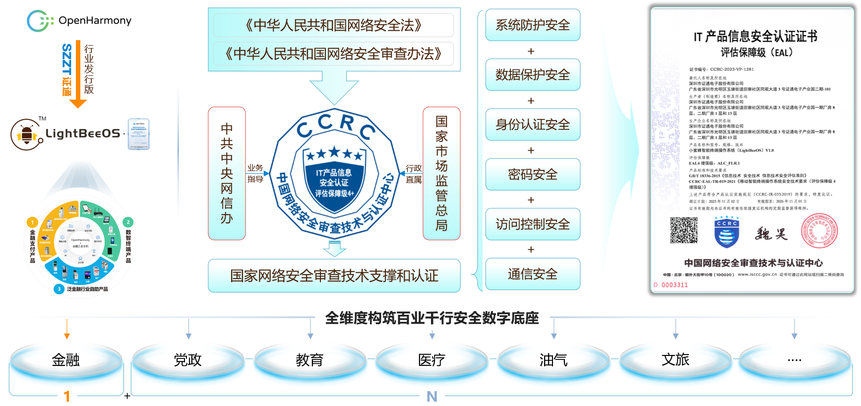 圖 全球首個(gè)且唯一獲CCRC EAL4+信息安全認(rèn)證OpenHarmony面向行業(yè)發(fā)行版OS
