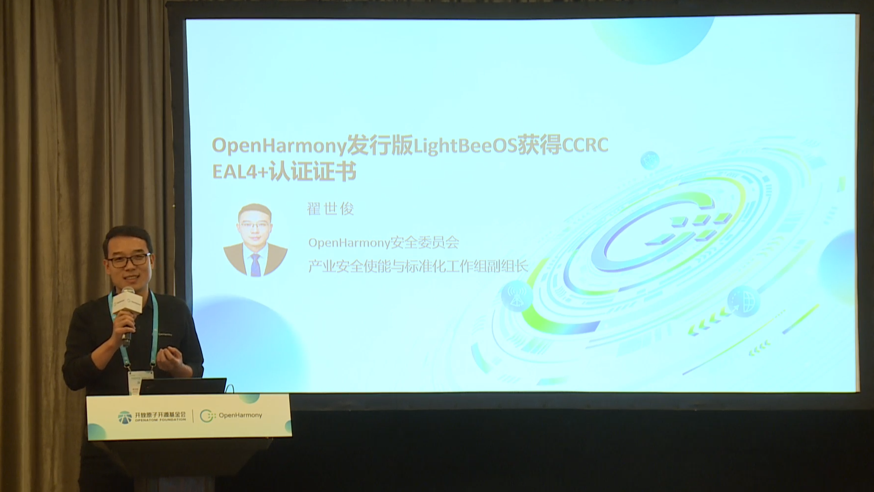 圖 OpenHarmony安全委員會(huì)產(chǎn)業(yè)安全使能與標(biāo)準(zhǔn)化工作組副組長翟世俊祝賀證通電子LightBeeOS首個(gè)通過CCRC EAL4+認(rèn)證