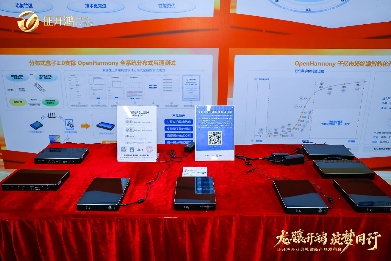 深圳市證開鴻科技有限公司(以下簡稱“證開鴻”)于2024年3月6日在證通電子產(chǎn)業(yè)園舉行了盛大的開業(yè)慶典。慶典以“龍驤開鴻 筑夢同行”為主題,分享了公司在OpenHarmony生態(tài)發(fā)展道路上的布局、規(guī)劃以及取得的成就,并發(fā)布了多款OpenHarmony新產(chǎn)品。