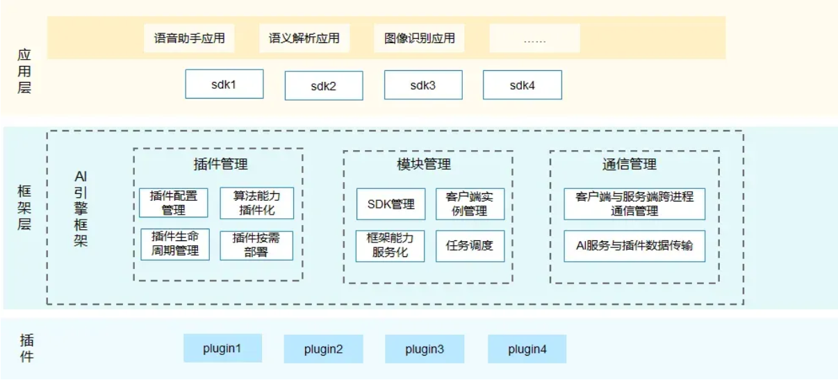 AI與智能硬件的結(jié)合正在創(chuàng)造許多新的機(jī)會,而OpenHarmony自帶 AI框架,也是OpenHarmony提供原生的分布式AI能力的子系統(tǒng)。主要包含插件管理、模塊管理和通信管理模塊,能完成對AI算法能力的生命周期管理和按需部署。插件管理主要實現(xiàn)插件的生命周期管理及插件的按需部署,快速集成AI能力插件;模塊管理主要實現(xiàn)任務(wù)的調(diào)度及管理客戶端的實例;通信管理主要實現(xiàn)客戶端和服務(wù)端之間的跨進(jìn)程通信管理及AI服務(wù)與插件之間的數(shù)據(jù)傳輸。后續(xù),會逐步定義統(tǒng)一的AI能力接口,便于AI能力的分布式調(diào)用。同時,框架提供適配不同推理框架層級的統(tǒng)一推理接口。