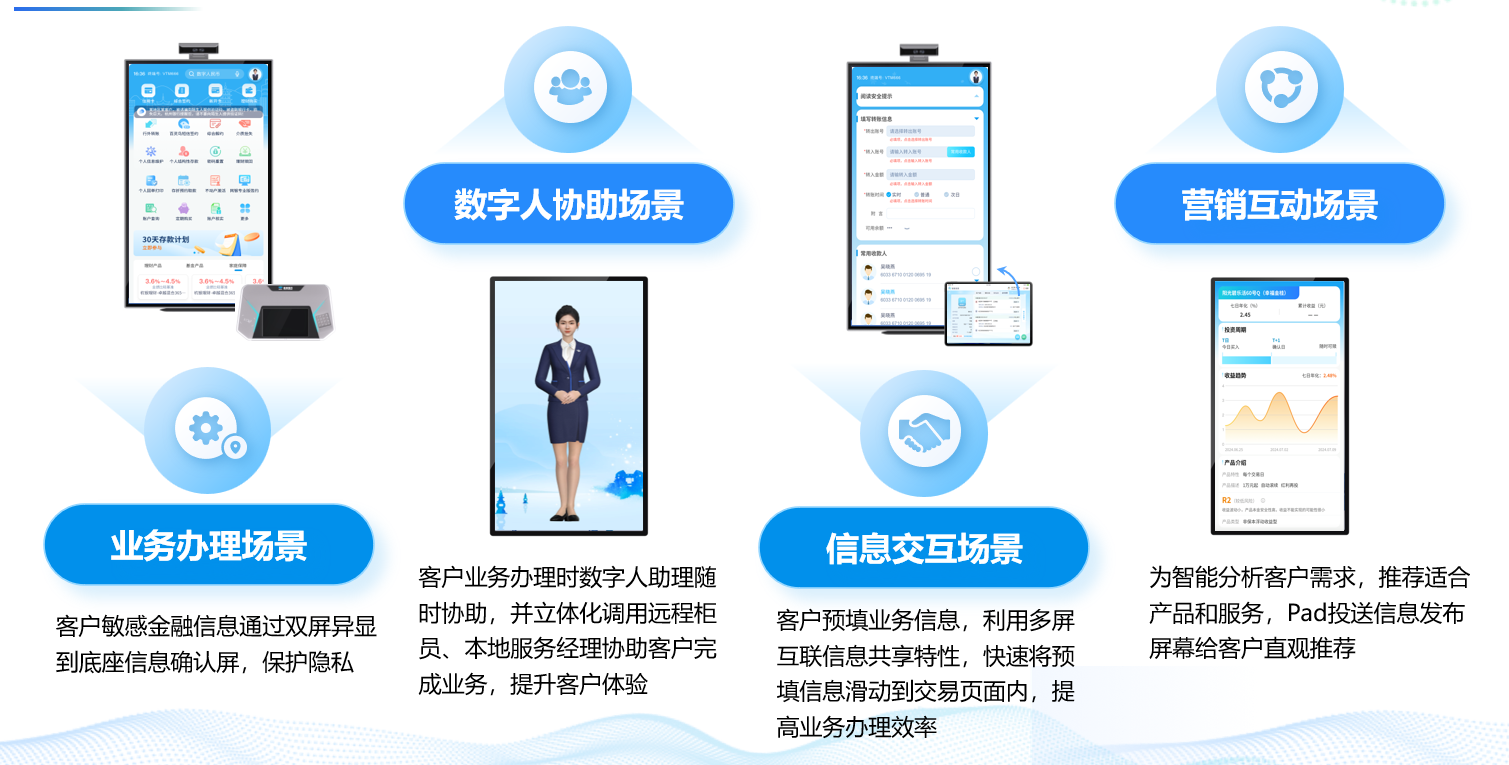 展會(huì)期間,證開鴻攜首款智慧廳堂金融解決方案全新亮相,產(chǎn)品搭載基于OpenHarmony為底座的LightBeeOS智能終端操作系統(tǒng),支持多屏異顯、人臉識(shí)別、二代證身份識(shí)別、掃碼識(shí)讀、IC/ID讀卡,可完成傳統(tǒng)自助機(jī)具轉(zhuǎn)賬匯款、理財(cái)基金、支付繳費(fèi)、簽約解約、存款貸款等百余項(xiàng)非現(xiàn)金自助業(yè)務(wù),并增加移動(dòng)端新特性,實(shí)現(xiàn)多屏互動(dòng),多渠道協(xié)同。有效解決金融業(yè)務(wù)過程中的高頻痛點(diǎn),助力金融業(yè)務(wù)更安全、更高效。